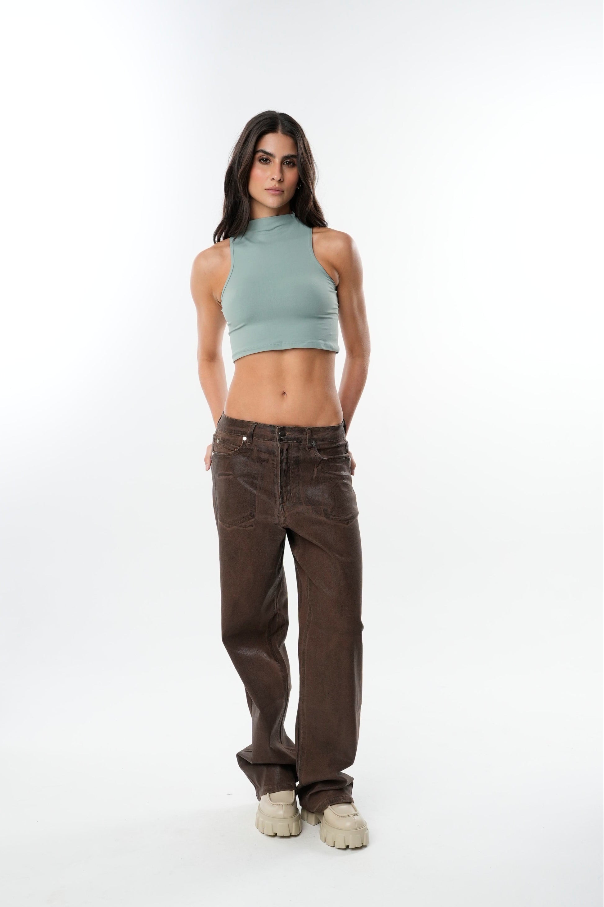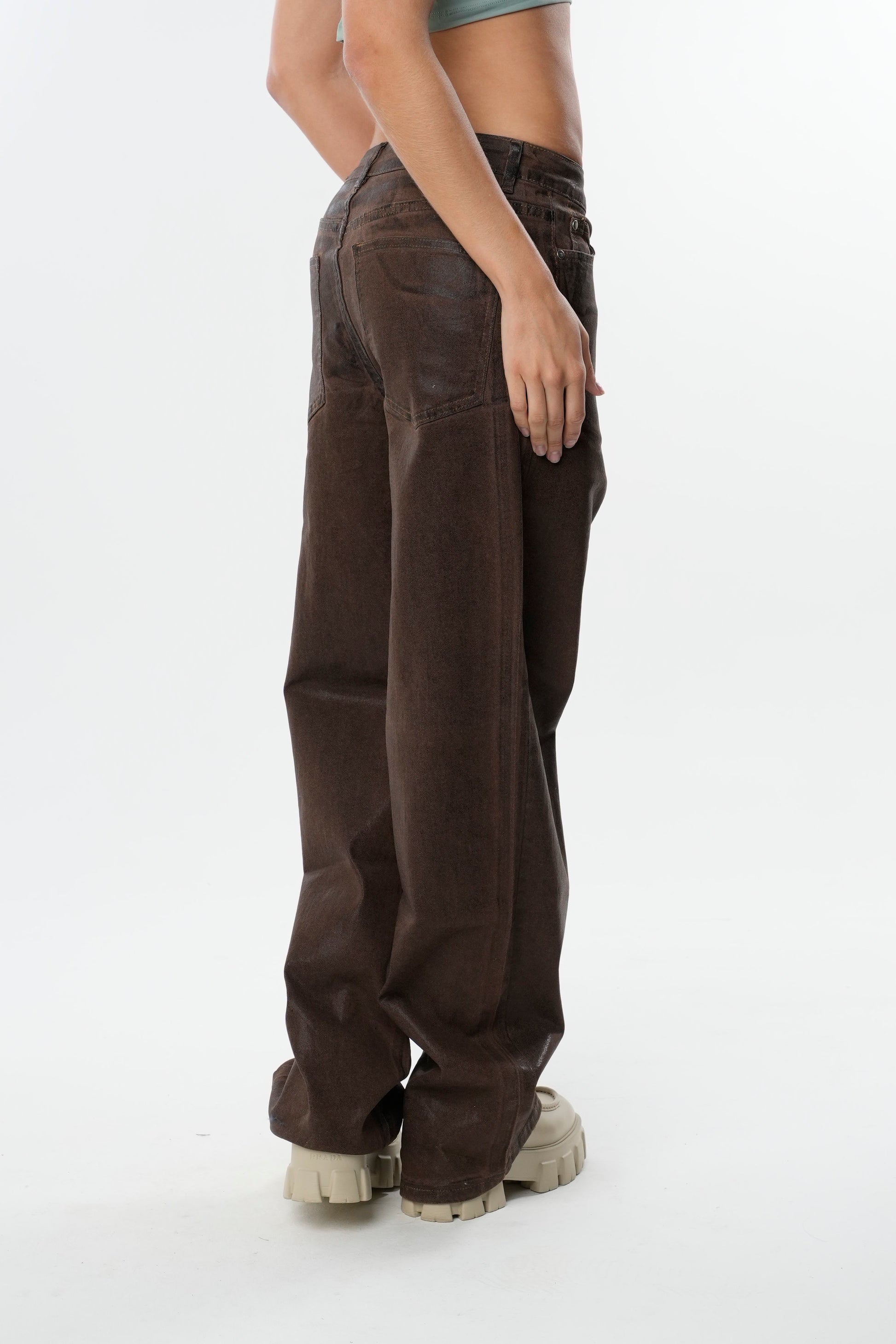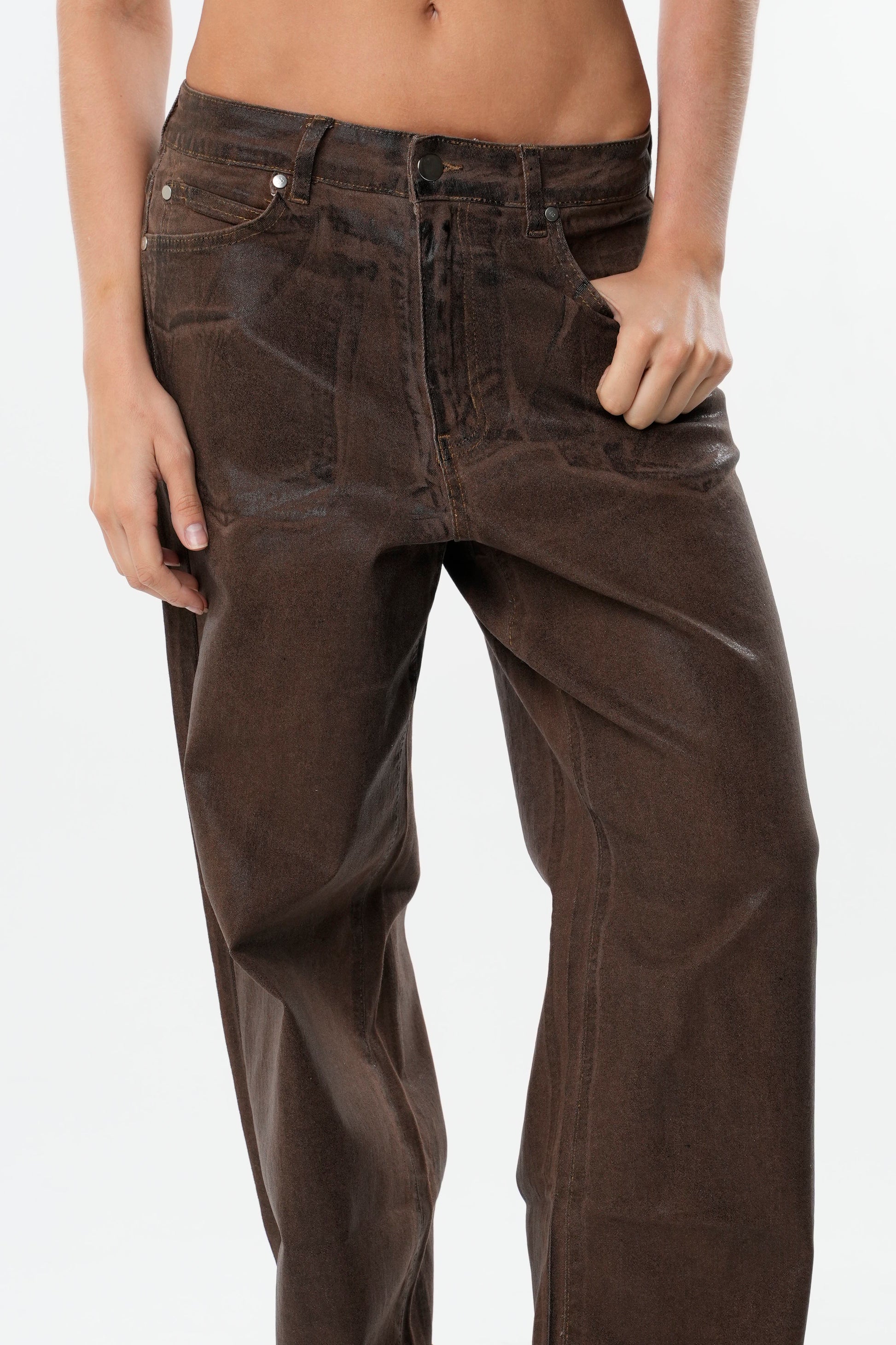Nuestro jean Tobacco se distingue por su color marrón oscuro, con un efecto ligeramente desgastado que aporta un aire urbano y moderno.