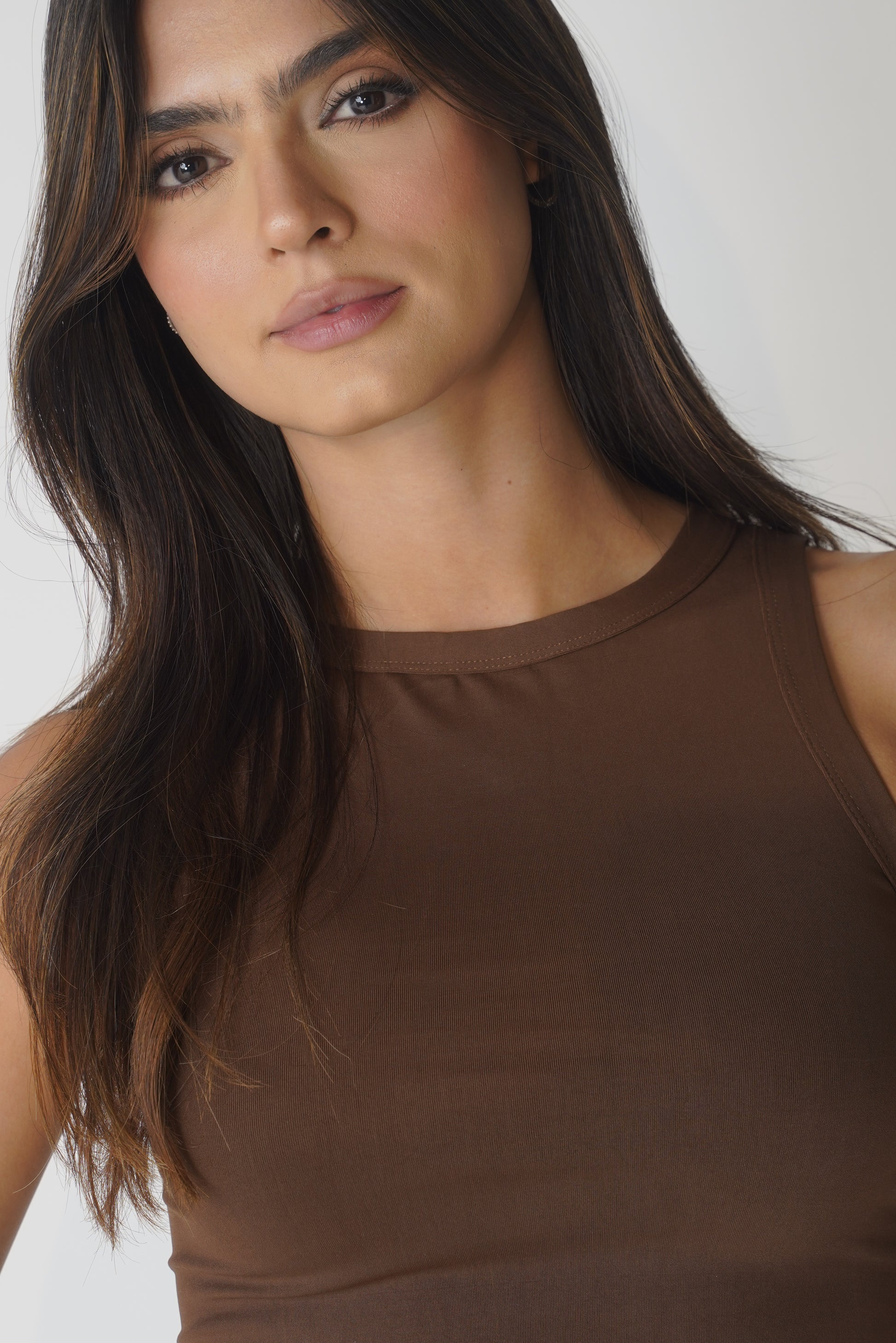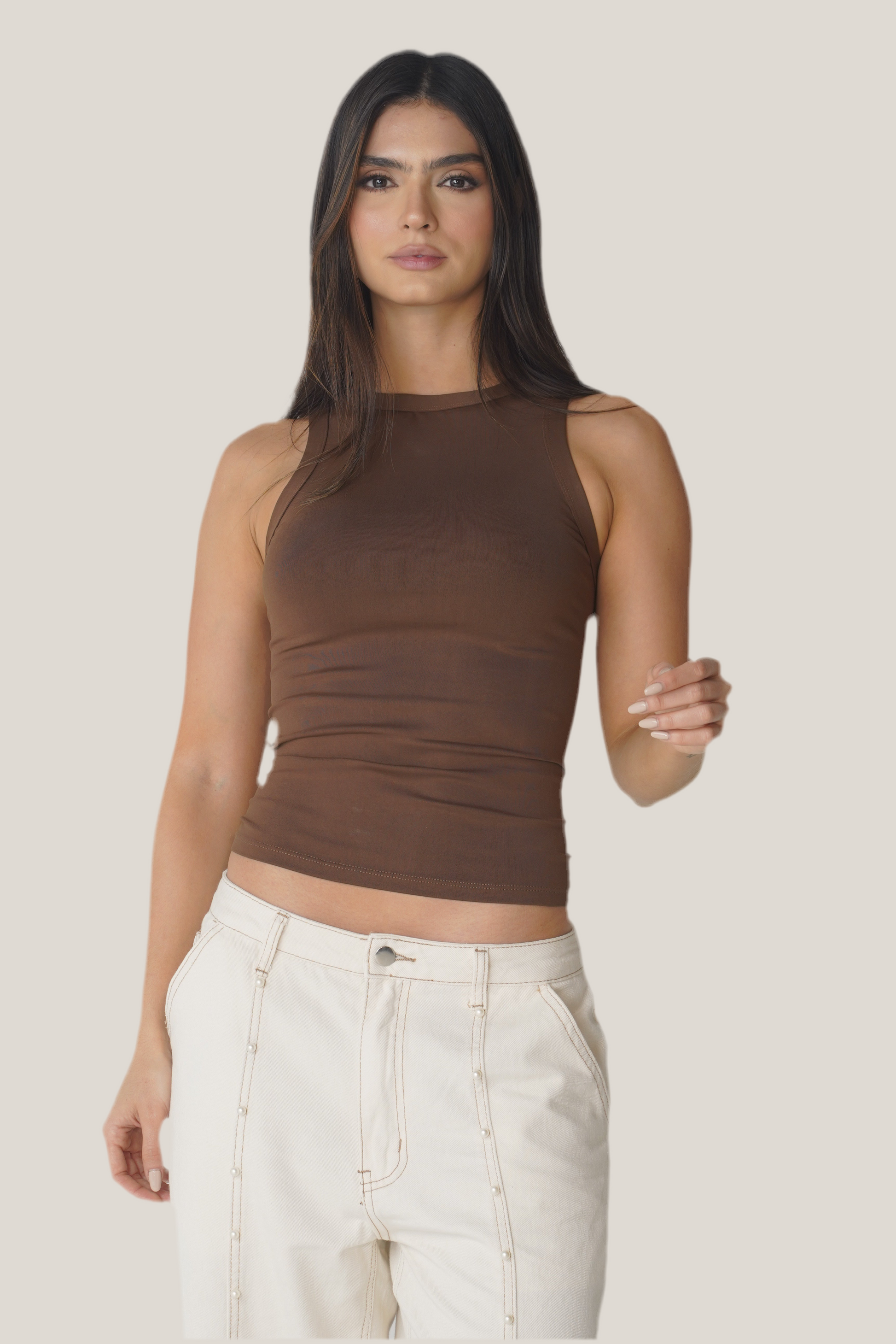 Blusa confeccionada en tela de alta compresión con efecto faja.
